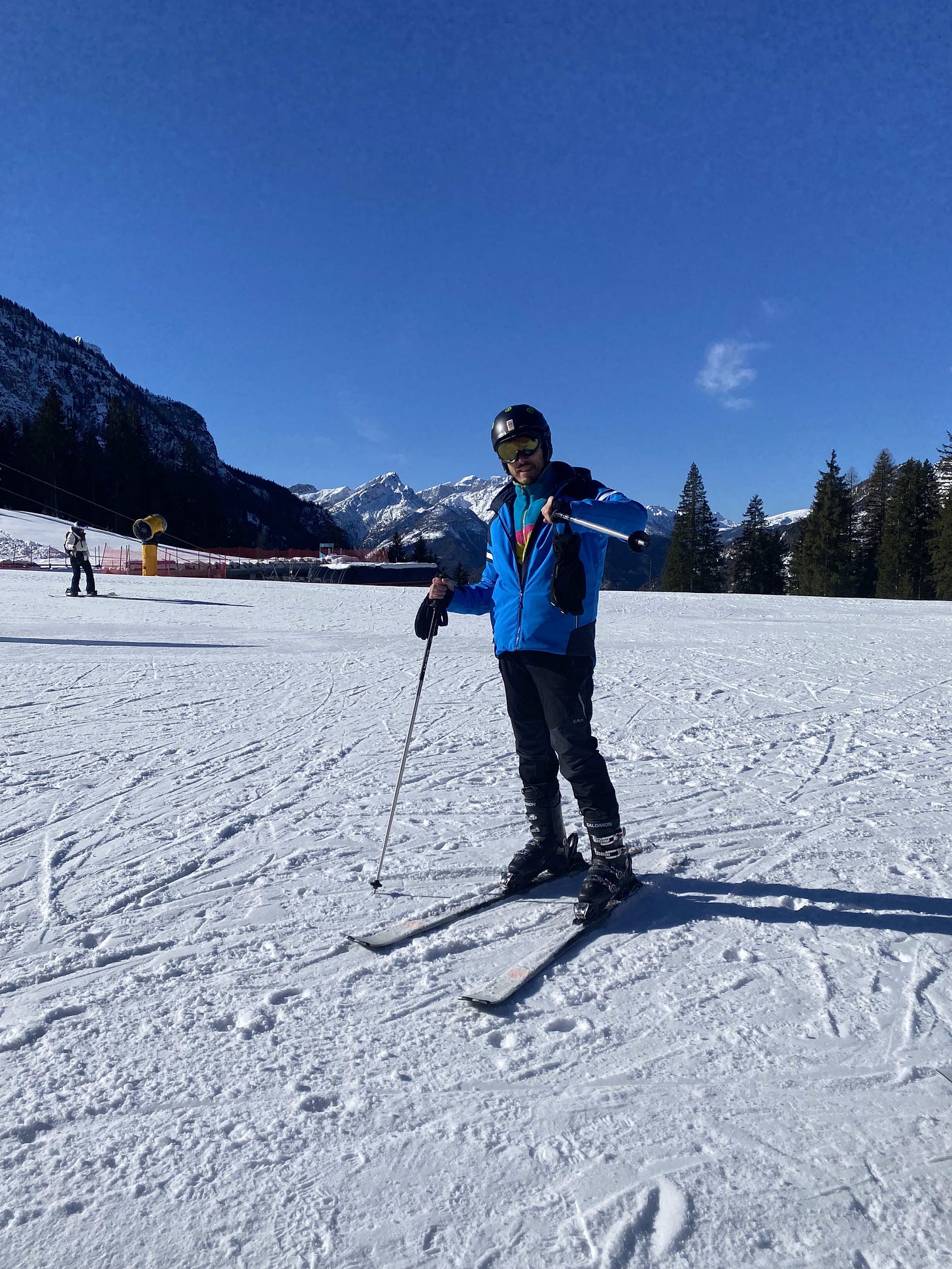 Before long, I was energetically propelling myself down the mountain with my ski poles while screaming to my friend in a high-pitched voice and marveling at the majestic Dolomites all around me.
